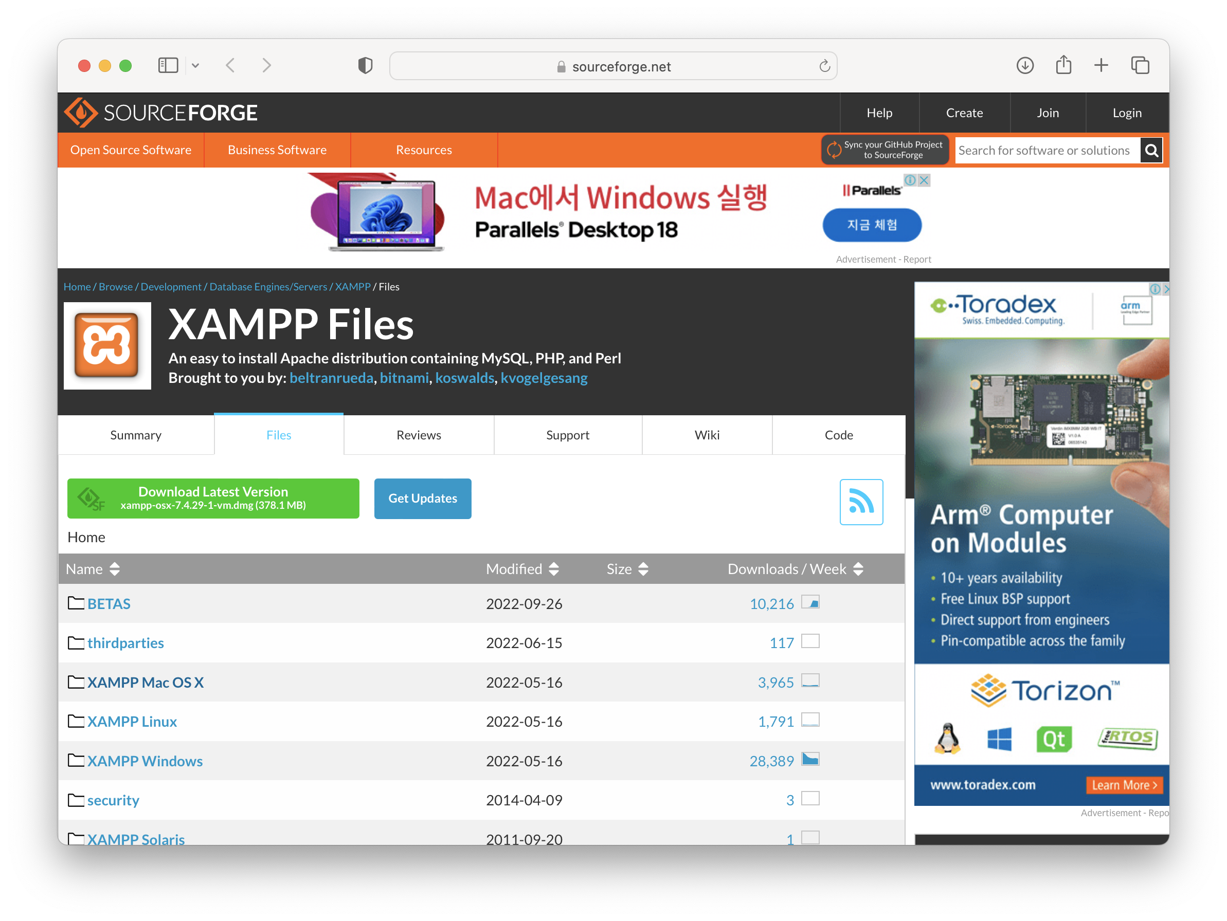 Xampp를 다운로드하면 Apache, MariaDB, PHP, Perl를 따로 설치하지 않아도 사용할 수 있게 됩니다.