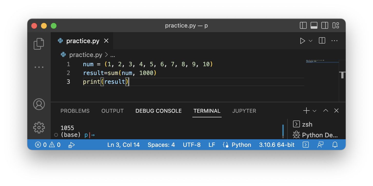 ✓ Return value: list(or tuple) 내부 값의 합 + num