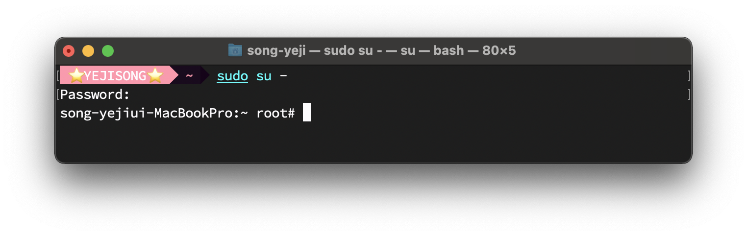 이렇게 명령어를 통해 root로 로그인하면 됩니다!