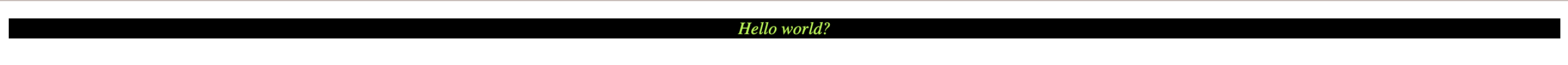 <p style='color:greenyellow; text-align:center; background-color: black; font-style:italic;'> Hello world? </p>