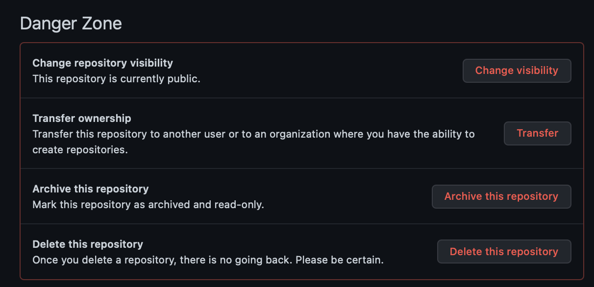 2. 아래로 스크롤 하다보면 Danger Zone이 보입니다.