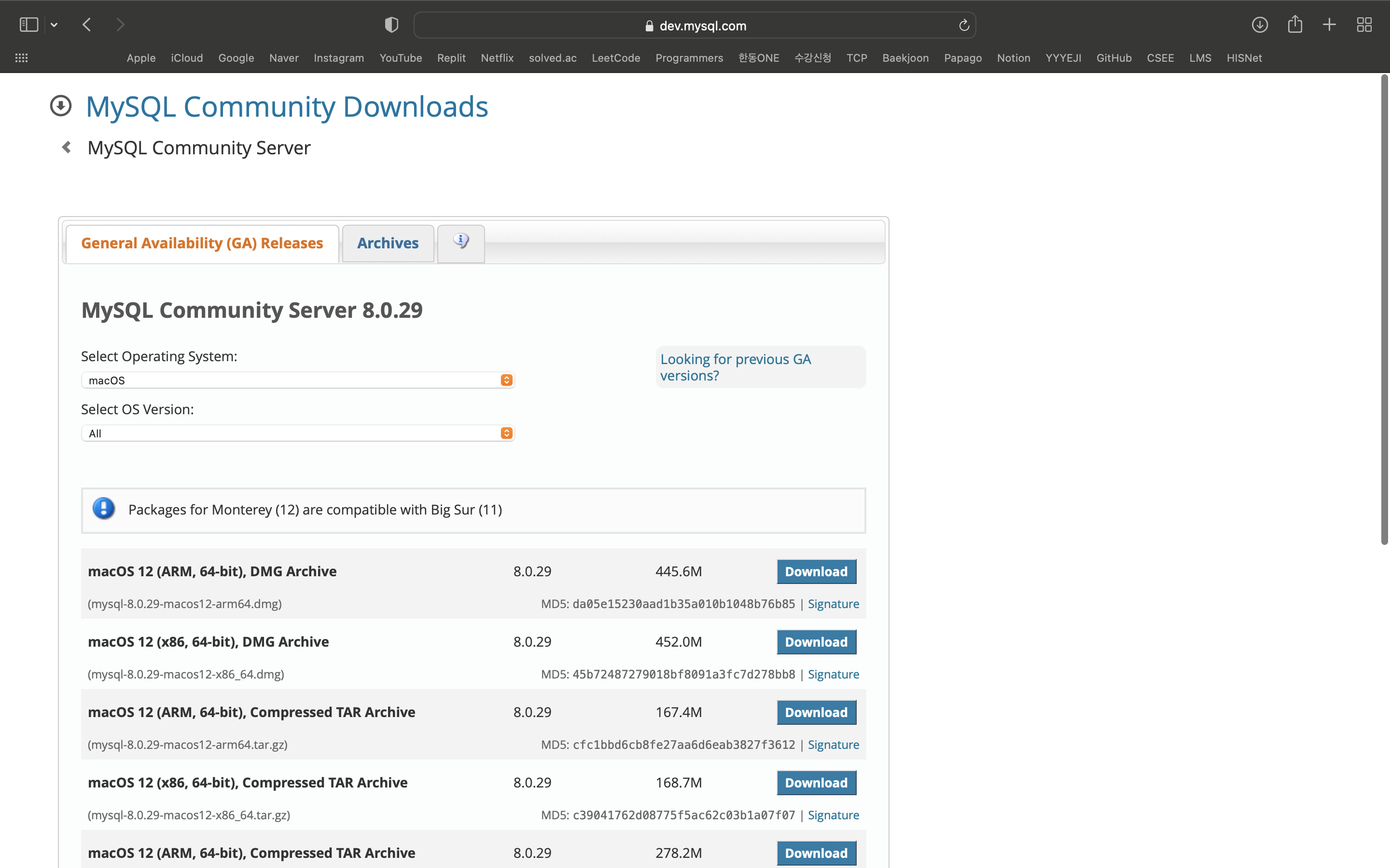 지금부터 MySQL 다운로드를 시작합니다 ٩( ᐛ )و