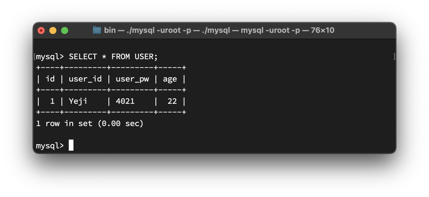 WHERE을 통해 원하는 데이터만 조회할 수도 있습니다.