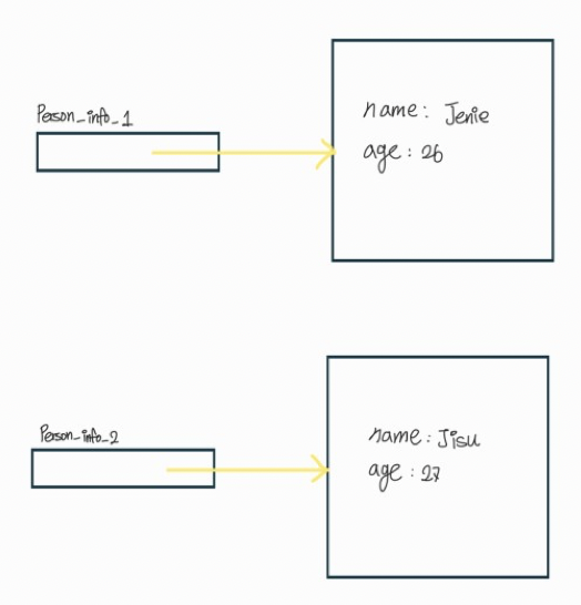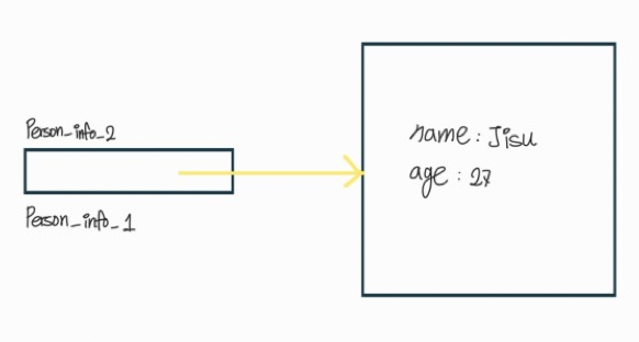 그 이유는 person_info_2에 person_info_1의 주소를 할당해 주면서 두 객체가 하나의 주소를 가르키게 되고