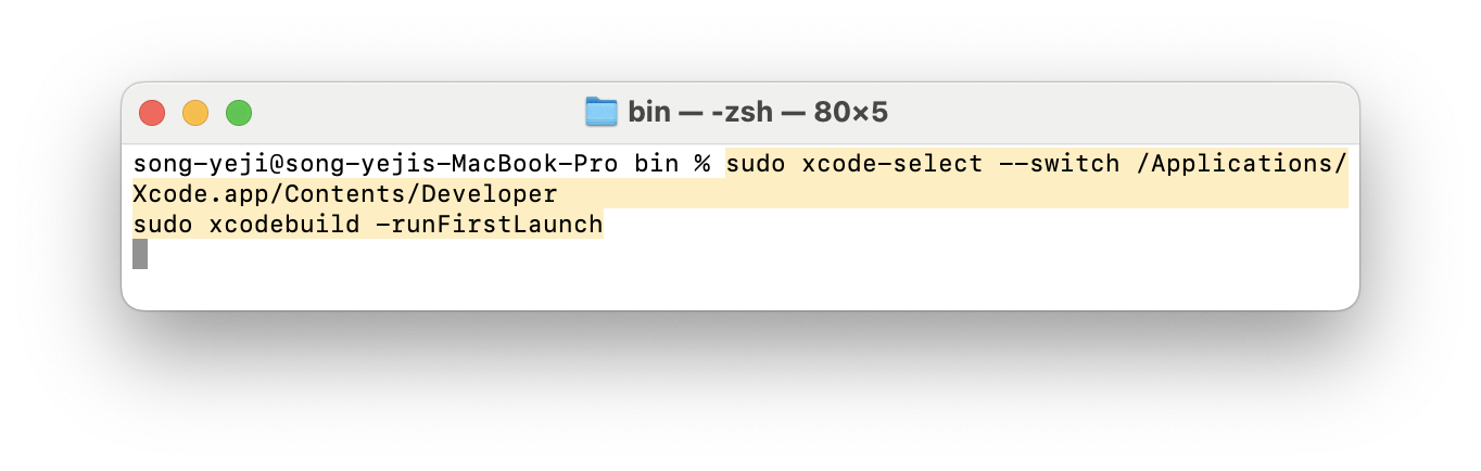 그 코드를 paste해주면 이 Xcode를 main으로 사용하겠다는 설정을 해줍니다.