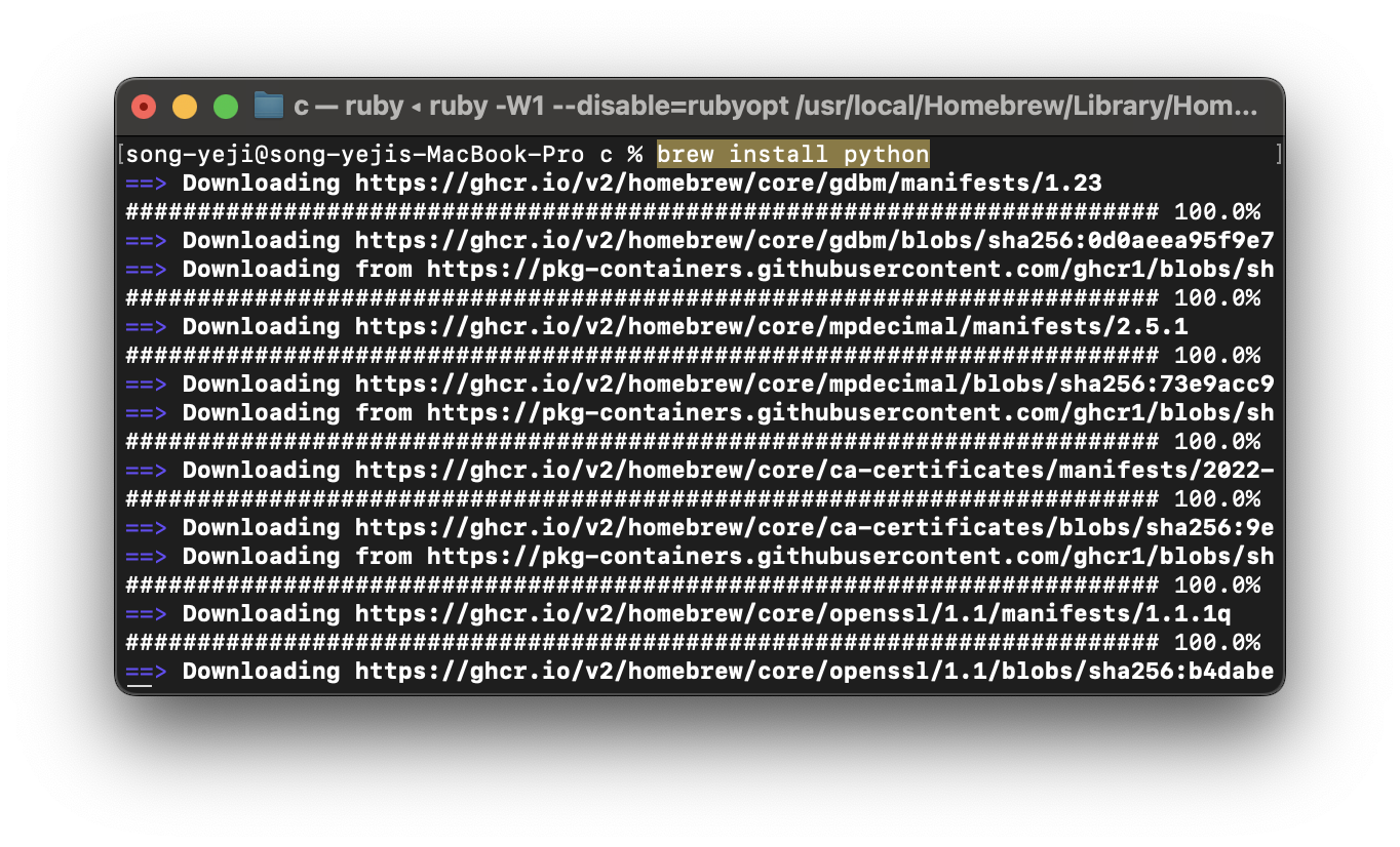 설치가 끝나면 brew 명령어를 통해 잘 설치됐는지 확인합니다.