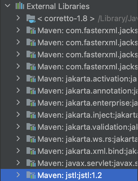 External Libararies에서 jstl이 추가된 것을 확인하고
