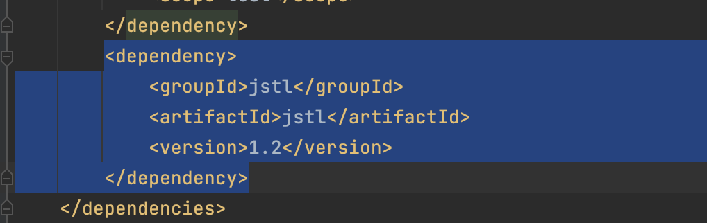 이 에러에 대한 해결책은 pom.xml에 JSTL 디펜던시(dependency)를 추가해주면 됩니다.