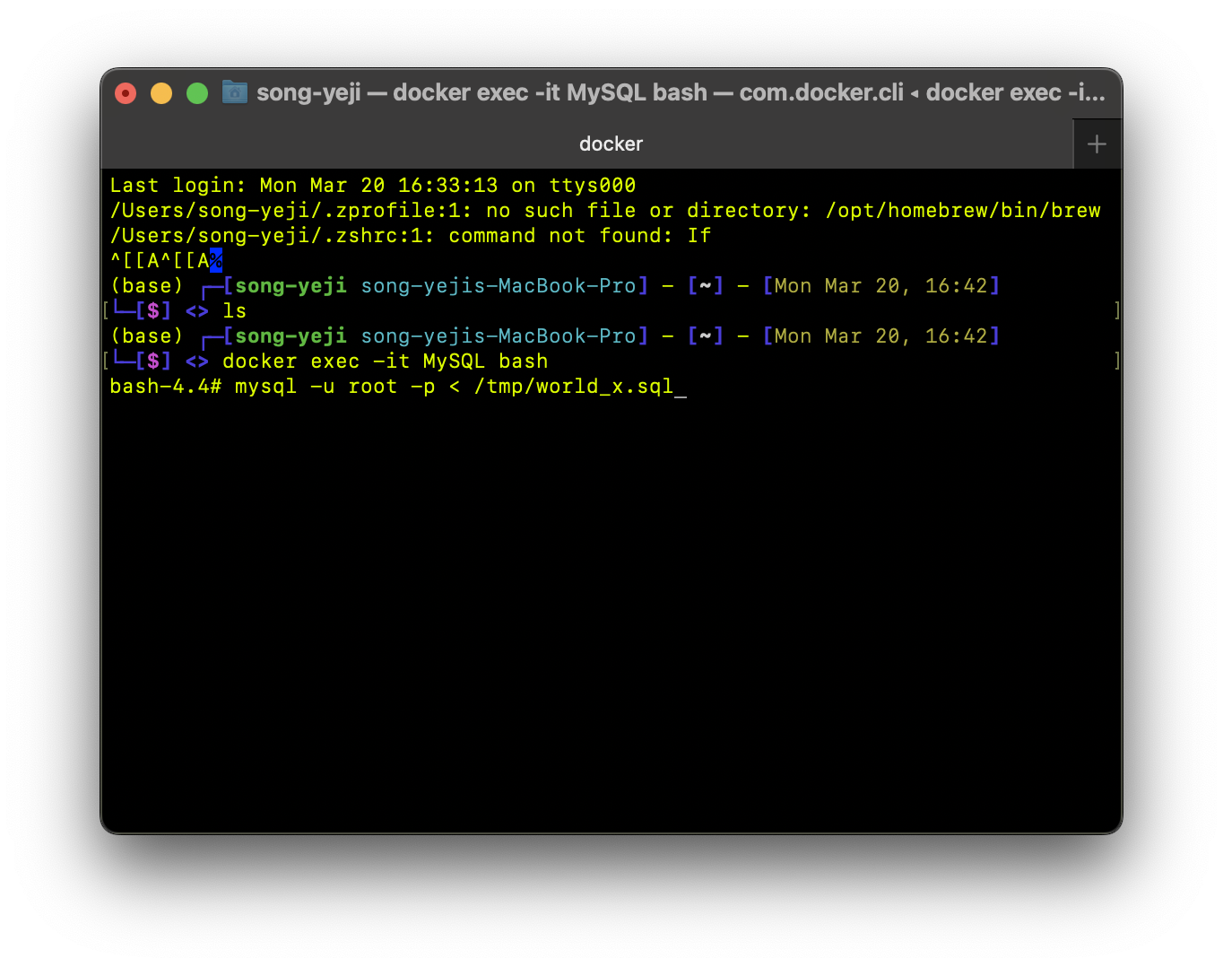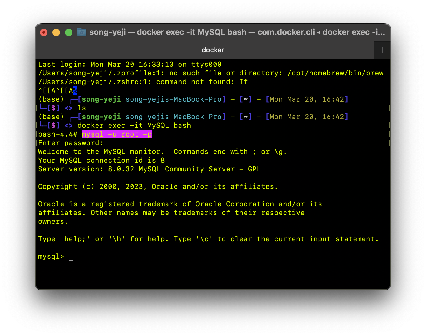 $ docker exec -it MySQL bash