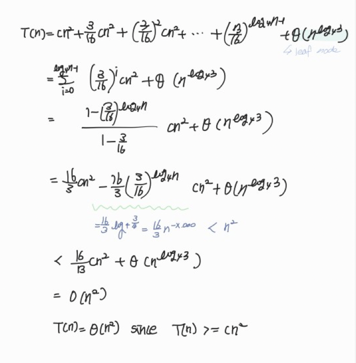마지막 결과를 통해 time complexity는 θ(n²)라는 것을 알 수 있습니다.