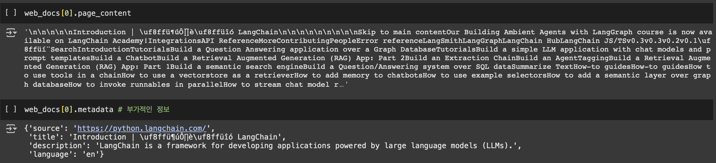 page_content나 metadata를 통해 내용과 메타데이터를 확인할 수 있습니다!