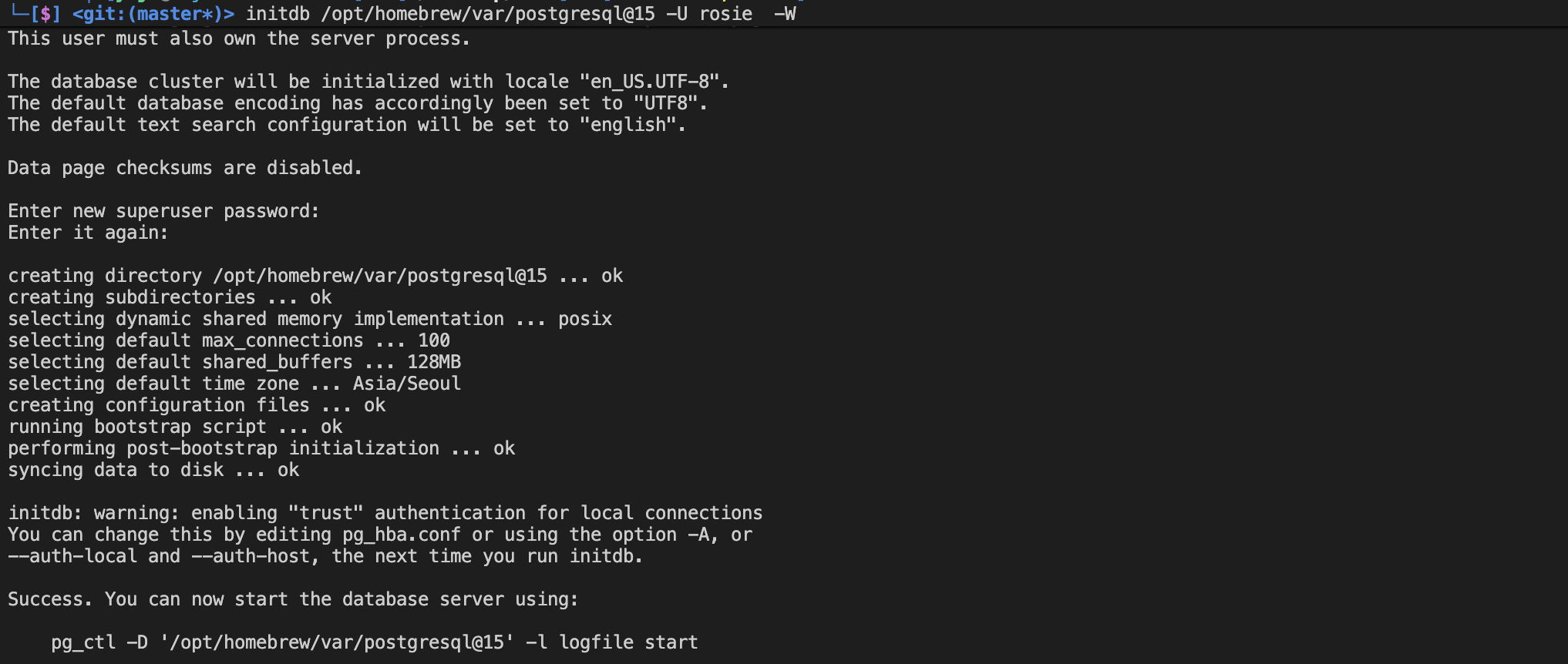 initdb /opt/homebrew/var/postgresql@15 -U server_name -W