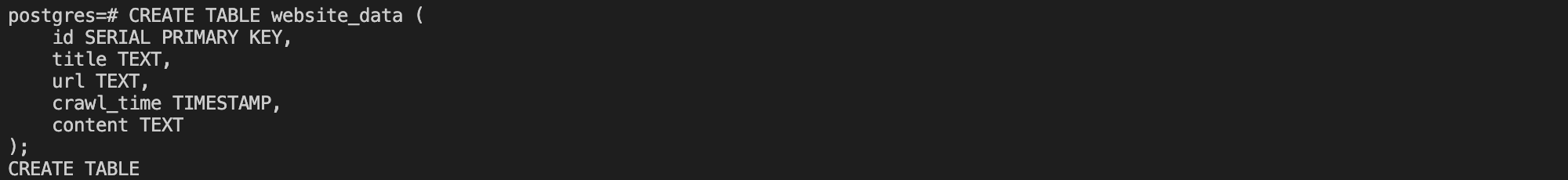 CREATE TABLE website_data (