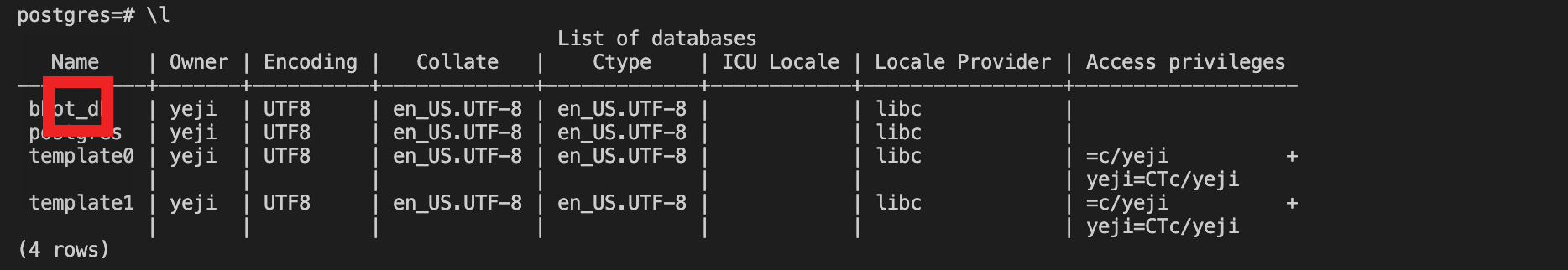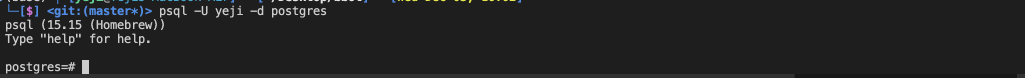 psql -U yeji -d postgres