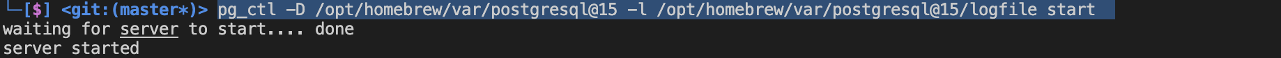 pg_ctl -D /opt/homebrew/var/postgresql@15 -l /opt/homebrew/var/postgresql@15/logfile start