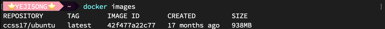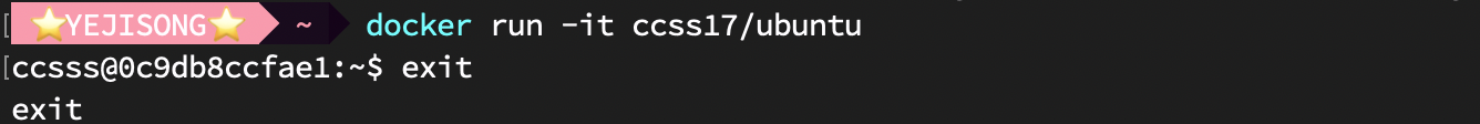 $ docker rmi ccss17/ubuntu // docker rmi <OPTIONS> <CONTAINER>
