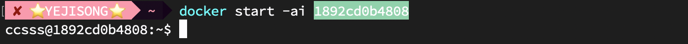 docker start -ai 1892cd0b4808 // docker start <OPTIONS> <CONTAINER>