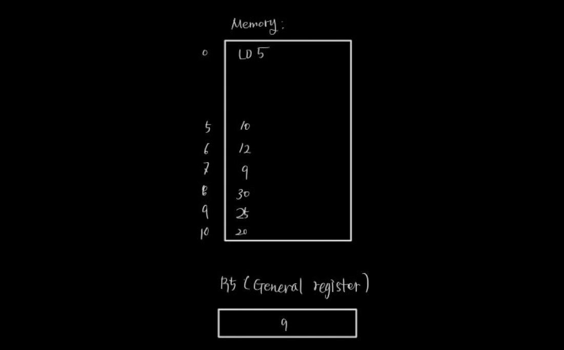 ⑤ - immediate는 값 자체를 의미하기 때문에 LD 5에서 5가 값이다.