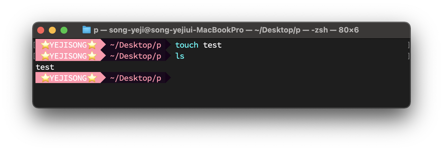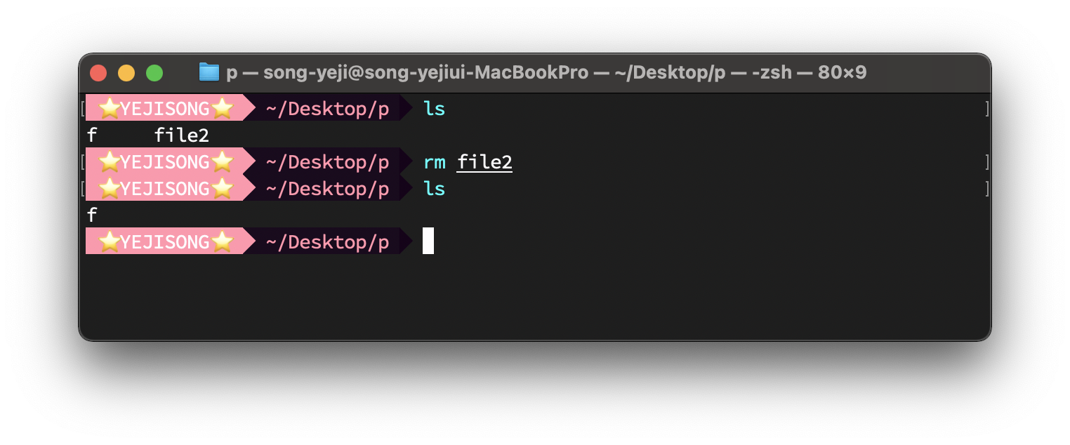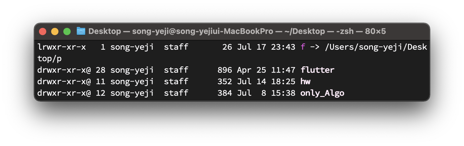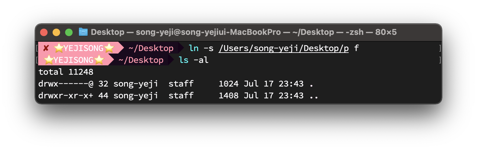 $ ln -s /Users/song-yeji/Desktop/p f