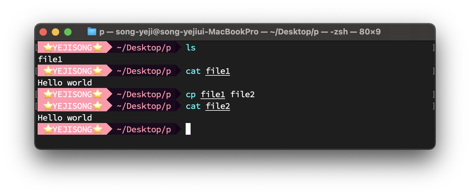$ cp file1 file2